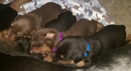 Puppies come with AKC Registration Papers. Dewclaws removed and tails docked. They will have there first shots and dewormend.